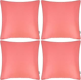 アウトドア枕カバー4枚セット 防水装飾正方形スローピローケース ガーデンパティオテントカウチ用(カバーのみ、中身なし) (18x18インチ/45x45cm、ピンク)