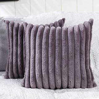 DEELAND フェイクファー プラッシュ 装飾スロー枕カバー ファジーストライプ ソフト枕カバー クッションカバー ソファ/カウチ/寝室用 18x18インチ 2枚セット