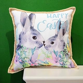 Hahadidi ハッピーイースター クッションカバー 18x18インチ (45x45cm) 装飾クッションケース 18x18'-1pack