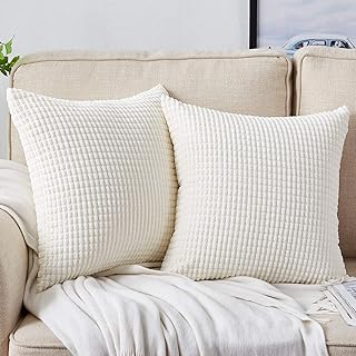 Bedwin コーデュロイソフト装飾スローピローカバー 顆粒ベルベット無地正方形クッションカバー ソファ、カウチ、ベッド、椅子、車のリビングルームの装飾に 18x18インチ/45x45cm (ホワイト)
