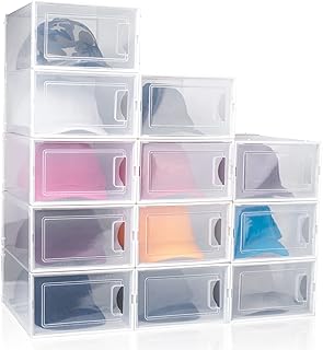 靴箱 クリアプラスチック 積み重ね可能 12個パック 靴収納 (13インチ x 9インチ x 5.5インチ) クローゼット用靴オーガナイザー 組み立て簡単 頑丈 前開き クリアシューズコンテナ
