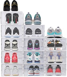YOLOPARK 靴箱 12個パック 積み重ね可能な靴コンテナ 引き出しタイプ 前開き 組み立て簡単 靴ケース 13.1 x 9 x 5.5インチ スニーカー収納オーガナイザー US メンズ 9 レディース 10