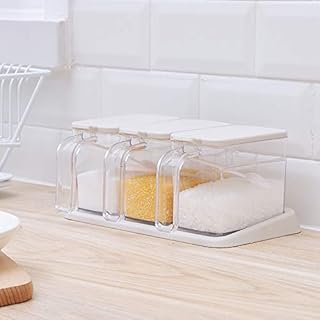 Poeland クリア調味料ボックス 3個 クリア調味料保存容器 スパイス 塩 シュガークルエット 調味料ジャー スプーン付き
