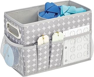 mDesign ソフトファブリックギフトラップ収納ボックス ハンドルと外側ポケット付き サイドハンドル ポケット6つ 2セクション グレー