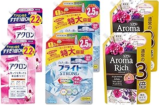 【セット品】アクロン おしゃれぎ用洗剤 フローラルブーケの香り 洗濯洗剤 液体 詰め替え 900ml×2個+白さと菌にブライトSTRONG 衣類用漂白剤 詰め替え 特大1200ml×2個+ソフラン アロマリッチ ジュリエット 柔軟剤 詰め替え 特大1200ml×2個