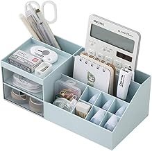 ペン立て 大容量 文房具 収納ケース デスクオーガナイザー 引き出し付き 卓上収納 スマートデスク ペンケース 小物入れ リモコンラック 机上用 小物ケース 化粧品 多機能 整理 (青い)