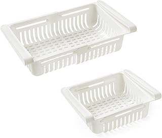 Asrio 冷蔵庫引き出し 冷蔵庫収納 キッチン 収納 冷蔵庫トレー 冷蔵庫吊り下げ デスク吊り下げ 収納ボックス 収納ケース 引き出し キッチンストッカー 棚板に掛けられる 伸縮可能 果物 野菜 卵 肉 薬 化粧品 小物 収納 多用途 大容量 プレゼント 可愛い おしゃれ 環境にやさしいPP材質 オンライン人気商品 Tik Tokに人気 (白)