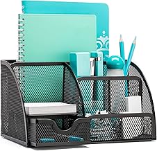 ペン立て ペンスタンド 文具収納 金属メッシュ 収納ボックス 卓上収納 多機能コンビペンホルダー 7グリッド 名刺入れ 収納ケース リモコンラック 小物入れ 便利 机上用(ブラック) (A)